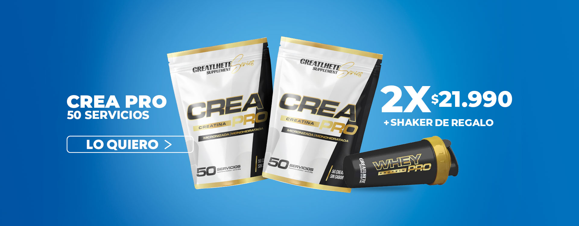 2X CREA PRO 250g – 50 Servicios | GREATLHETE CREATINA + SHAKER DE REGALO